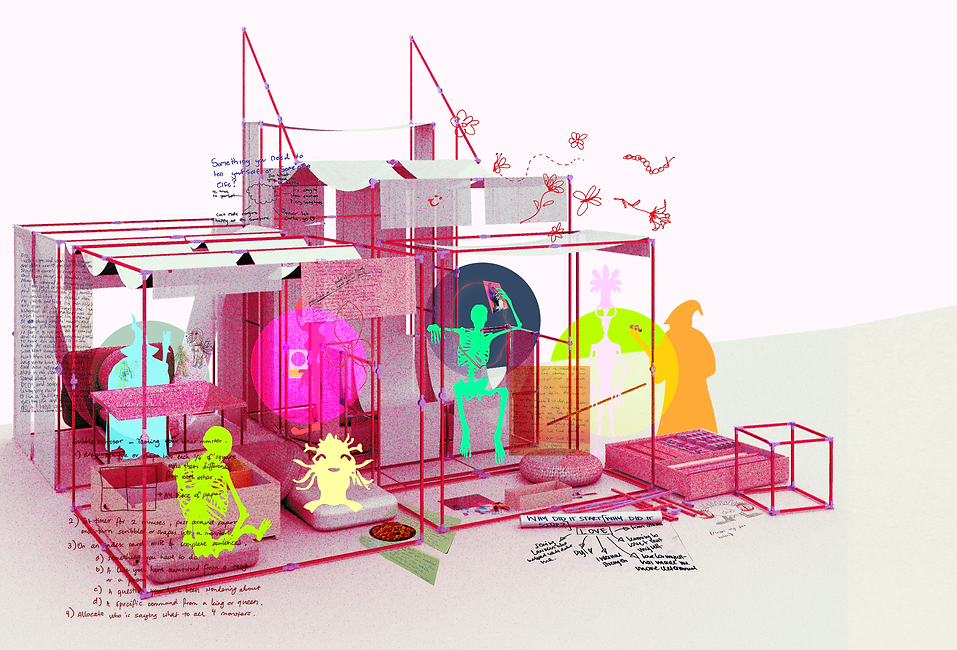 This project establishes a space where adults are invited to play. Can play become the link between trauma and expression? Can play be utilised as a tool for freedom and imperfection? How can we redefine a space so that it is suitable for healing?