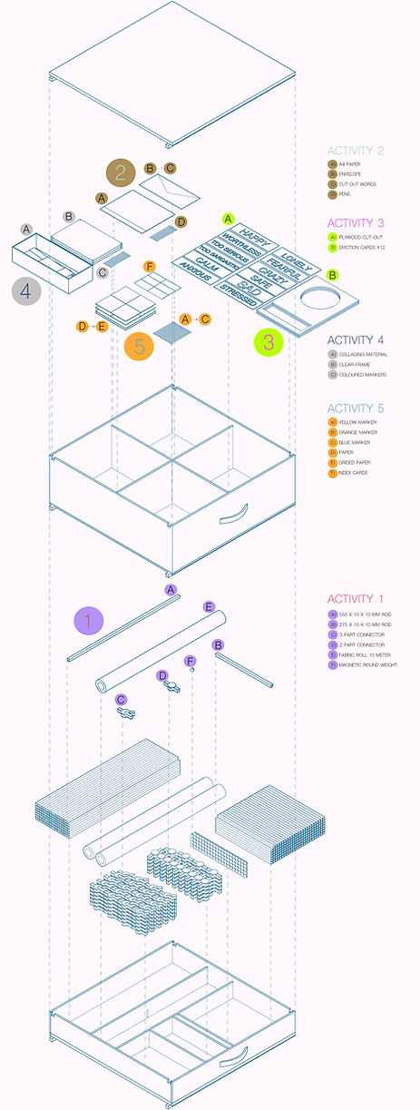 ‘How to heal your inner child’ inspired speculation into how adult play may engage with the inner child to heal the wounds of our past. Whether or not the space is perfect doesn’t matter; it’s about how we connect and grow through play. Five spatial activities are designed to reconnect with the inner child allowing us to invite play into our adult lives. These activities are universal and not limited to one space or context and provide a reference to begin the healing process. The way we play doesn’t need to be beautiful or intentional; it is intended to be raw, disordered and without one straight answer or solution.